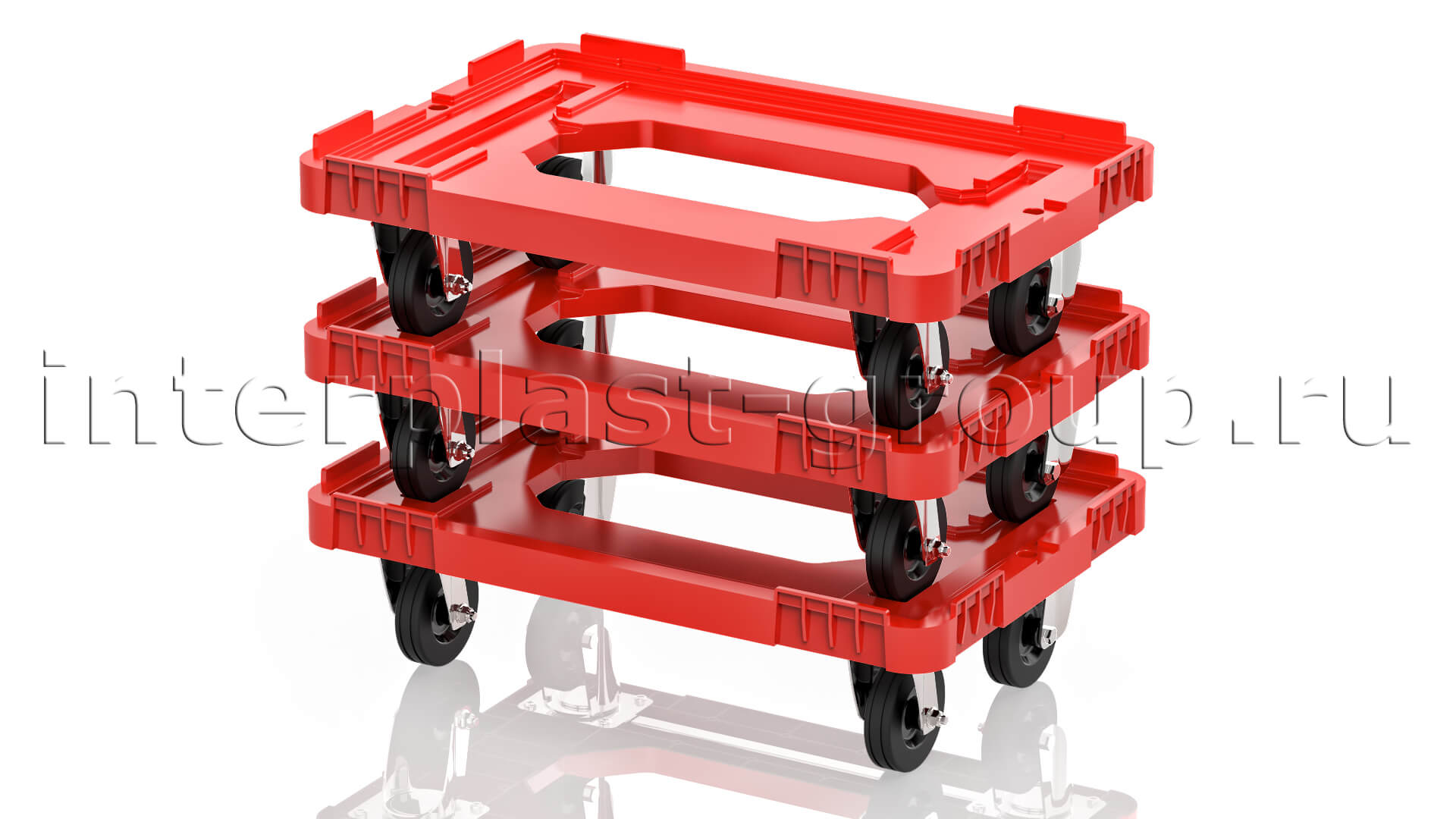 Тележка пластиковая с отверстием без тормозов усиленная красная в Северодвинске
